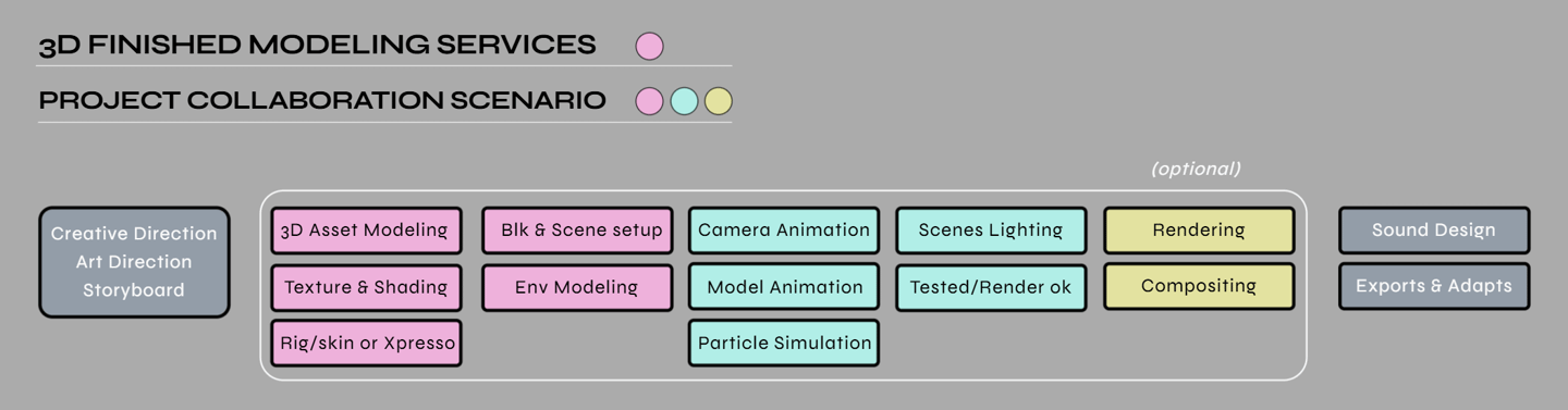 A- I deliver the scene files and your team makes final adjustments, takes care of the Rendering, Compositing and Editing in house.